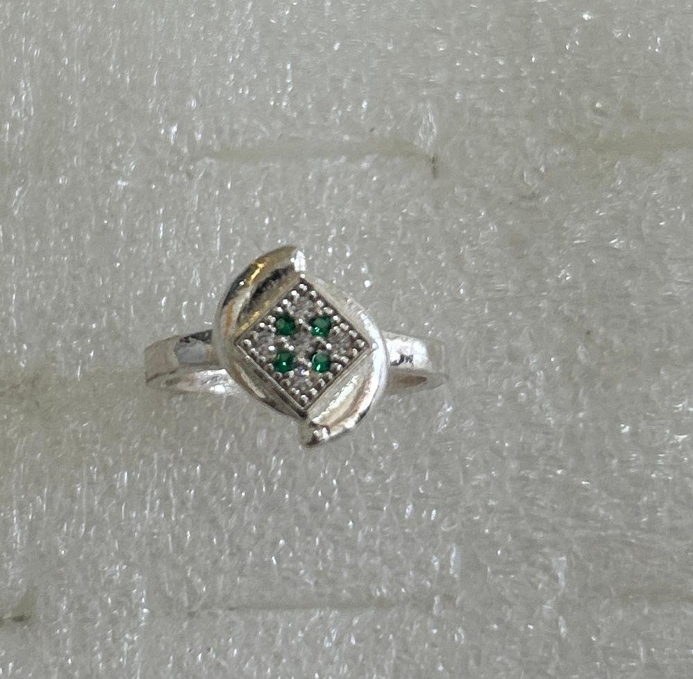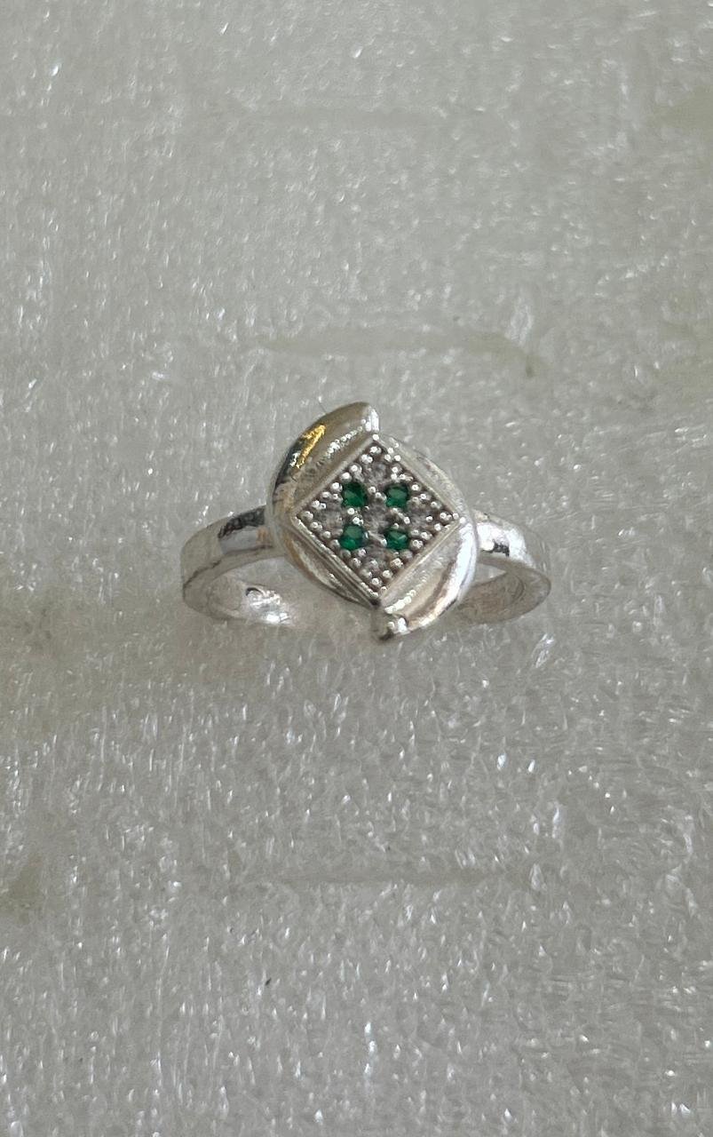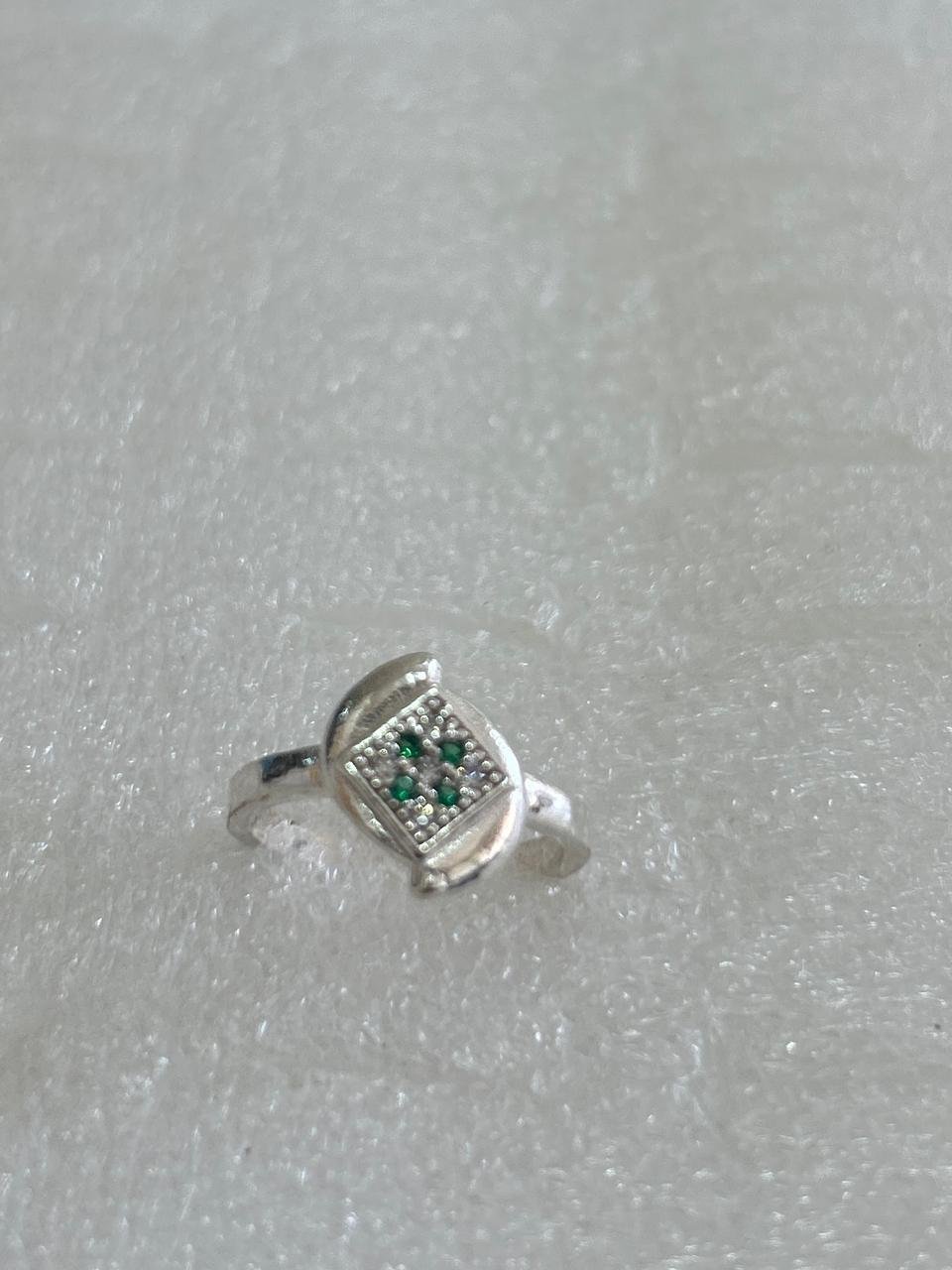 Inside the square frame, a cluster of vibrant Green Cubic Zirconia stones is nestled amongst sparkling Clear White CZ stones, creating a beautiful and eye-catching contrast. Its clean lines and contemporary style make it a perfect accessory for everyday wear or as a subtle statement piece for any occasion.