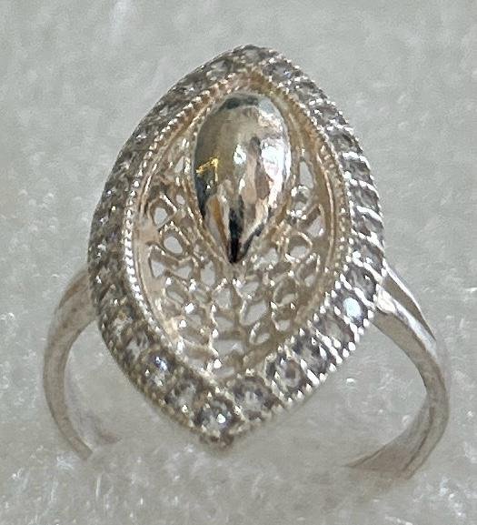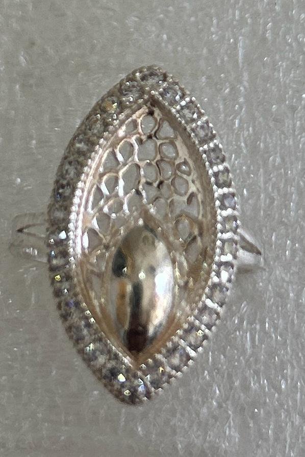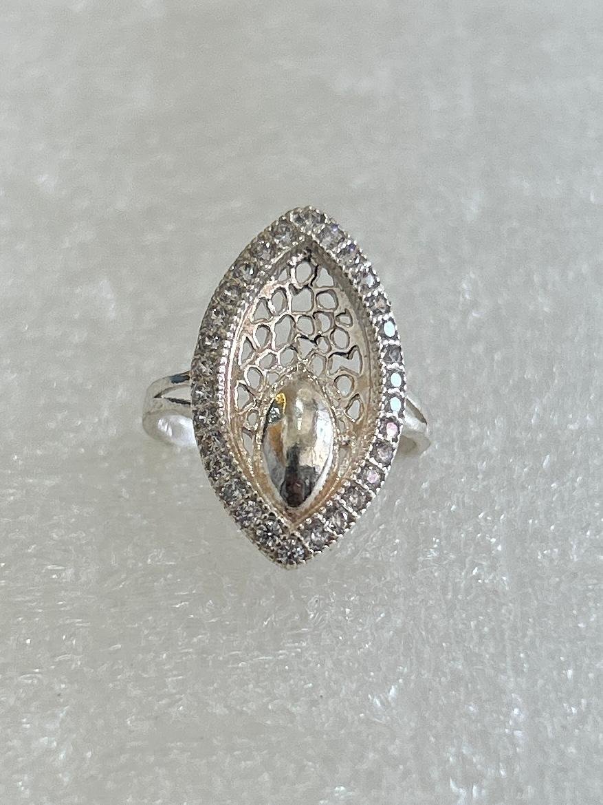 Add a touch of vintage glamour to your jewelry collection with this stunning Marquise-Shaped Statement Ring. The design features a classic “navette” or pointed-oval silhouette, known for its ability to make fingers look slender and elegant.