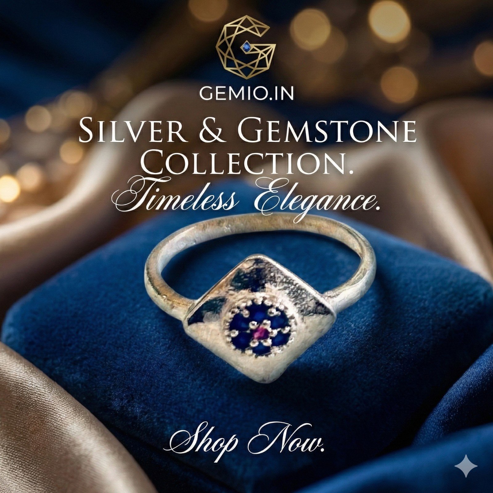 At the center sits a delicate floral motif, comprised of a Pink/Ruby-colored central stone surrounded by a halo of deep Blue stones. This pop of color against the matte silver tone makes it a versatile piece that pairs perfectly with denim, ethnic wear, or casual daily outfits.
