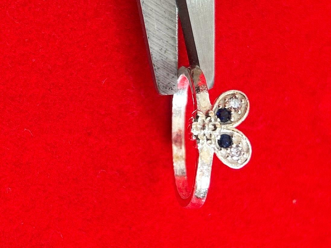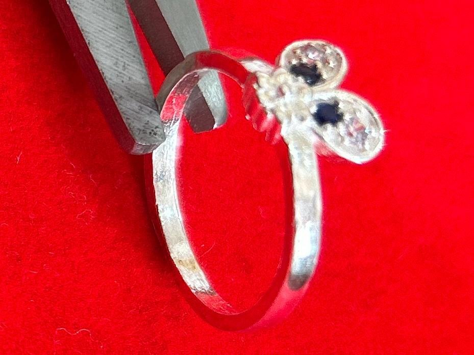 Flutter into style with this enchanting Silver Butterfly Ring. Capturing the beauty of nature, this ring features a stylized butterfly silhouette adorned with contrasting gems. The deep blue stones evoke a sense of mystery and calm, while the clear crystals add a classic touch of brilliance.